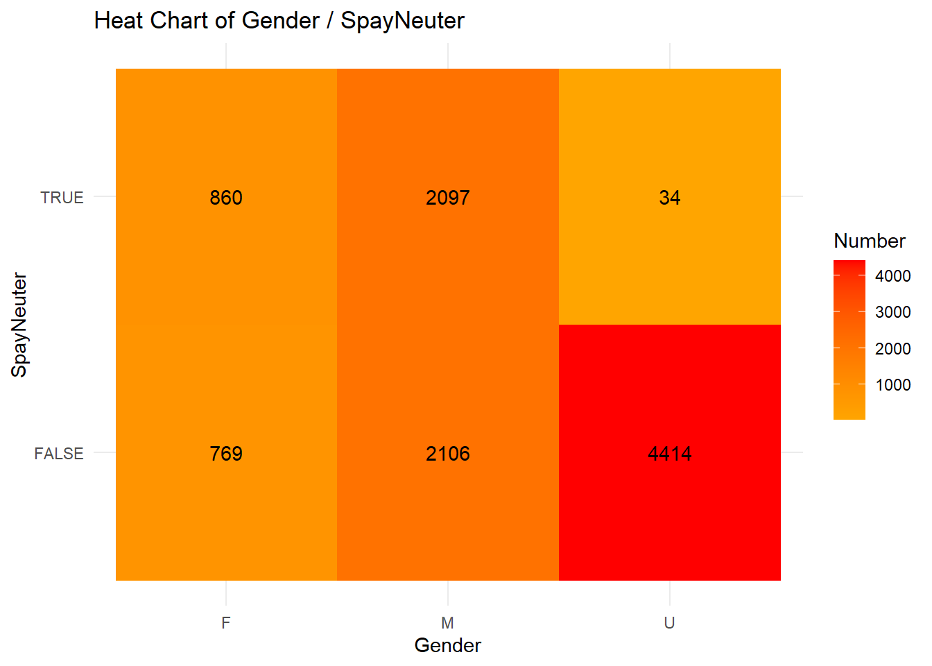 In this part, we analyze the relationship between the number of dog bites and the gender / spayed or neutered status of dogs. We draw a heat chart to roughly analyze the two characteristics.